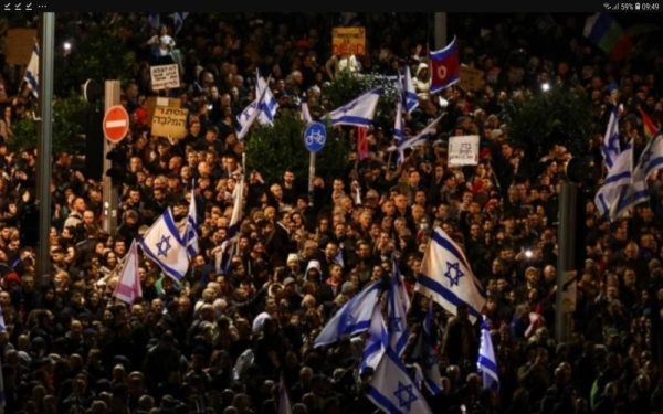 تظاهر عشرات الآلاف من الإسرائيليين، مساء أمس السبت، في تل أبيب والقدس وحيفا ضد حكومة بنيامين نتنياهو، وذلك بعد إجراءات قضائية جديدة من شأنها عملياً تقويض المحكمة العليا وإدخال “النظام الديمقراطي الإسرائيلي” في حالة فوضى.