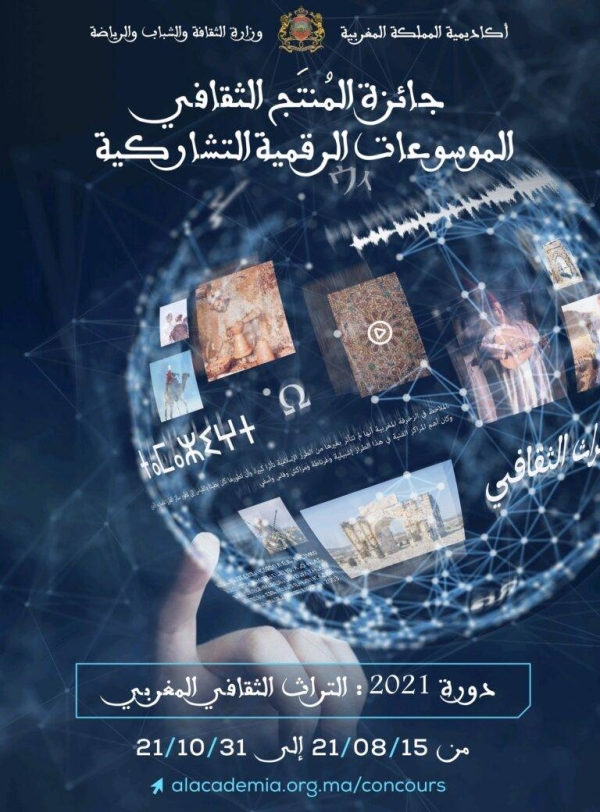 أعلنت أكاديمية المملكة المغربية عن إطلاق الدورة الثانية لجائزة المنتج الثقافي المنشور في الموسوعات الرقمية التشاركية 2022-2023 التي تخصص هذه السنة للإسهامات الفكرية والإبداعية المتعلقة بالتراث الثقافي المغربي غير المادي.