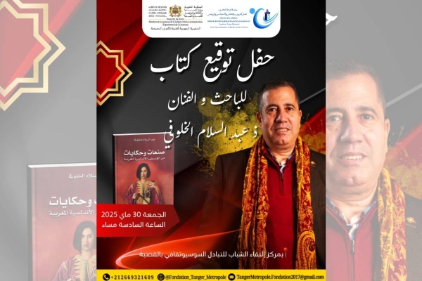 تحتضن عروس البوغاز طنجة مساء غد الجمعة، حفل توقيع كتاب صنعات وحكايات من الموسيقى الأندلسية المغربية، لمؤلفه الفنان والباحث ومعد البرامج التلفزيونية عبد السلام الخلوفي، الحفل الذي تنظمه مؤسسة طنجة الكبرى للعمل الثقافي والتربوي والاجتماعي والرياضي، التي دأبت على تنظيم مجموعة من الفعاليات الناجحة، سواء من خلال برامج رمضانيات طنجة أو صيف طنجة الكبرى، أو بعض الأنشطة العديدة الأخرى، سيعرف مشاركة جوق محمد العربي المرابط بقيادة الفنان المقتدر محمد العروسي، مع قراءة نقدية يقدمها الأستاذ الباحث ياسين العشاب، كما سيشهد الحفل مجموعة من الفقرات الفنية الأخرى.