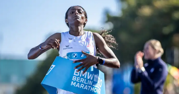حطمت الإثيوبية تيغست أسيفا الرقم القياسي العالمي لماراثون السيدات في برلين أمس الأحد، بتسجيل زمن رسمي قدره ساعتان و11 دقيقة و53 ثانية أي بأقل من دقيقتين عن الرقم القياسي السابق، الذي سجلته الكينية بريجيد كوسغي في 2019 وبلغ ساعتين و14 دقيقة وأربع ثوانٍ.