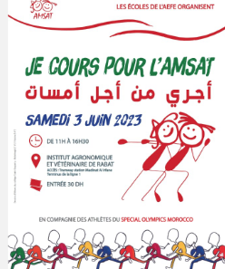” أجري لأجل أمسات ” تنظم فعالياته بالمعهد الزراعي البيطري بالرباط من الساعة الحادية عشرة صباحا الى غاية الساعة الرابعة و النصف زوالا..