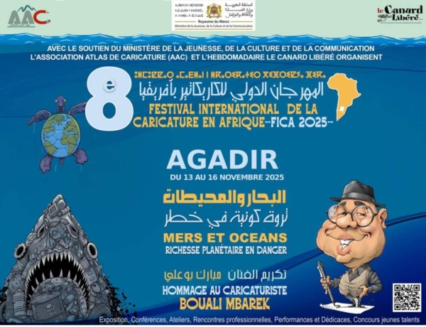 تحتضن مدينة أكادير فعاليات الدورة الثامنة للمهرجان الدولي للكاريكاتير بإفريقيا (فيكا)، التي تقام بدعم من وزارة الشباب والثقافة والتواصل، وتنظمها جمعية أطلس للكاريكاتير (AAC) والأسبوعية “لوكنار ليبيري”، وذلك في الفترة الممتدة من 13 إلى 16 نوفمبر الجاري.