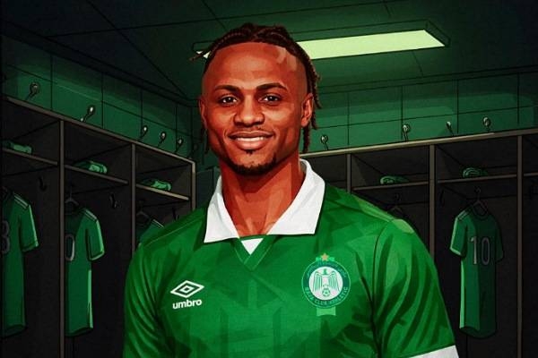 ونشر الرجاء مقطع فيديو عبر صفحته الرسمية بالفيسبوك للترحيب باللاعب النيجيري البالغ من العمر 26 عاما.