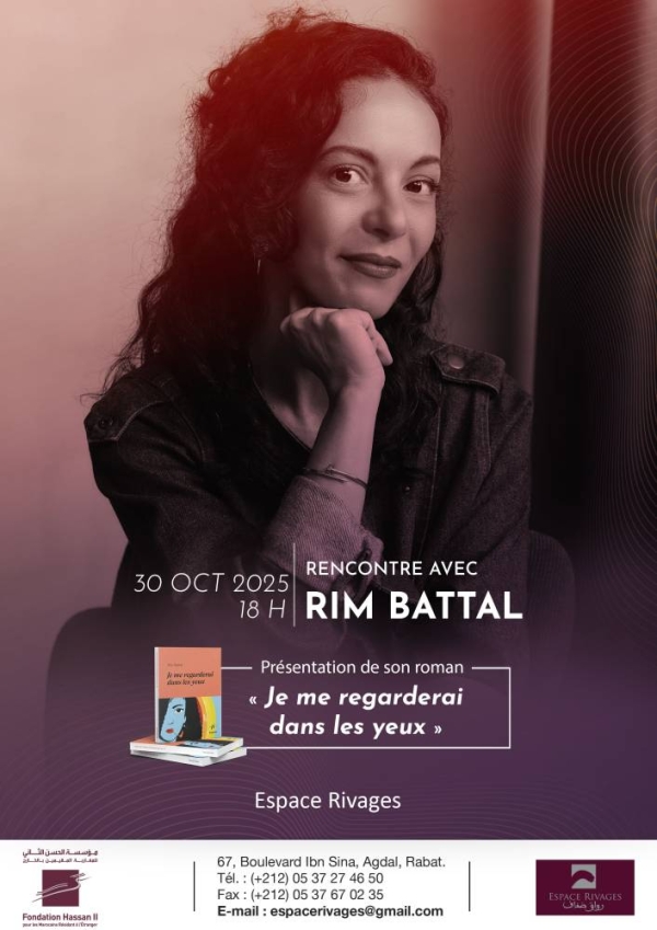 تنظم مؤسسة الحسن الثاني للمغاربة المقيمين بالخارج لقاءً أدبياً مع الكاتبة ريم بطال بمناسبة تقديم روايتها «سأنظر في عيني»، وذلك يوم غد الخميس 30 أكتوبر الجاري على الساعة السادسة مساء  بـرواق ضفاف بمقر المؤسسة بالرباط. وستدير هذا اللقاء الشاعرة سكينة حبيب الله.