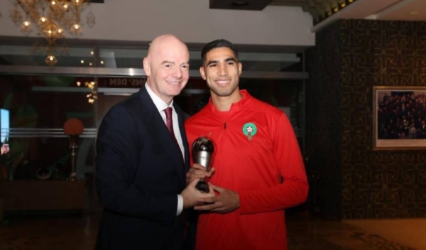 منح السويسري جياني إنفانتينو رئيس الاتحاد الدولي لكرة القدم عميد المنتخب الوطني أشرف حكيمي جائزة الفيفا، بعد اختياره ضمن التشكيلة الرسمية لأفضل لاعبي العالم لعام 2025.