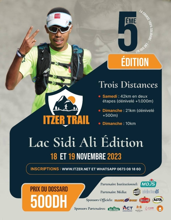 يعود سباق ITZER TRAIL، السباق التضامني 100٪، في نسخته الخامسة والذي يتزامن مع ذكرى عيد الاستقلال المجيد هذا السباق الذي تجرى أطواره في يومين بمسافة (42 كلم) حول بحيرة أكلمام سيدي علي، على ارتفاع +1000 متر.