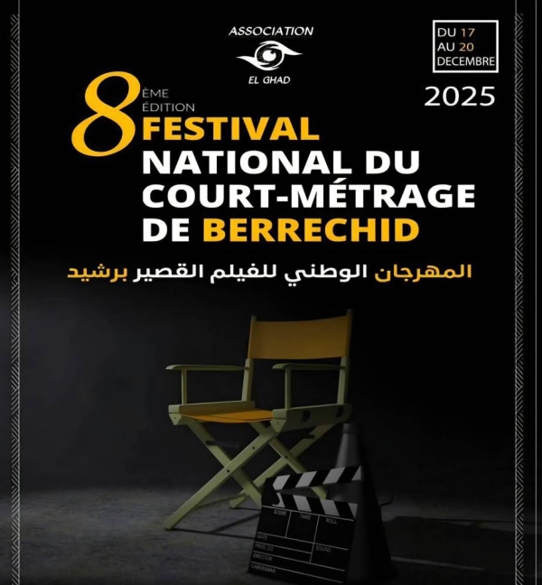 تحتضن مدينة برشيد، في الفترة الممتدة من 17 إلى 20 دجنبر 2025، فعاليات الدورة الثامنة للمهرجان الوطني للفيلم القصير، الذي تنظمه (جمعية الغد للتواصل والإبداع)، تحت شعار (تنمية الذوق الفني والسينمائي)، وذلك بدعم من مجموعة من المؤسسات والشركات العمومية والخاصة.