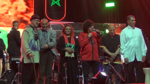 أما لحظة ناس الغيوان فعرفت مشاركة شرفية لعميدها الفنان عمر السيد، فيما انبرى الفنان رشيد باطما، بأداء المقاطع الفردية للمجموعة بمشاركة الفرقة الموسيقية وكورالها، الذي ردد معه روائع “الصينية” و”أهل الحال” وغيرها من الأغاني، التي ميزت مسار المجموعة، قبل أن تختتم السهرة بصعود جماعي للمكرمين الذين أدوا جميعا رائعة “نداء الحسن” رددتها معهم الجماهير الغفيرة، التي حجت إلى “بلاص ماريشال” لاستعادة النوستالجيا الغيوانية.