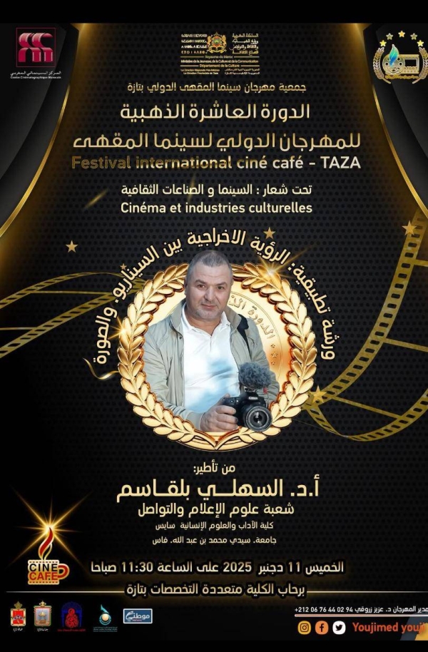 تنظم جمعية مهرجان سينما المقهى بتازة الدورة الذهبية للمهرجان العاشر لسينما المقهى الدولي للفيلم الروائي والوثائقي القصير من 10 إلى 13 دجنبر الجاري بمدينة تازة تحت شعار : “السينما و الصناعات الثقافية”.