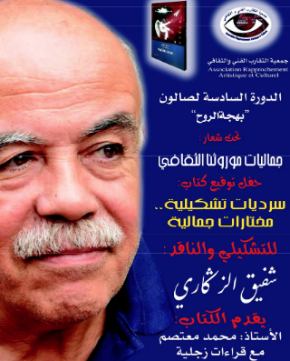 في إطار الدورة السادسة لصالون “بهجة الروح”، تنظم جمعية التقارب الفني والثقافي تحت شعار “جماليات موروثنا الثقافي”، حفل توقيع كتاب “سرديات تشكيلية.. مختارات جمالية” للتشكيلي والناقد شفيق الزكاري، يقدم الكتاب الأستاذ: محمد معتصم، مع مصاحبة لقراءات زجلية متنوعة، وذلك يوم الخميس 4 ماي 2023 في الساعة الرابعة والنصف مساء بمقر الجمعية الكائن بدرب خروبة بالمدينة القديمة بالدار البيضاء.