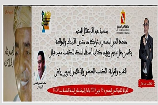 بمناسبة ذكرى عيد الاستقلال المجيد (18 نونبر)، ينظم منتدى الإبداع والمواطنة، بشراكة مع مقاطعة الحي المحمدي بالدار البيضاء، حفل تقديم وتوقيع كتاب “أصدقاء الملك” للكاتب والمؤلف الدكتور سعيد هبال.