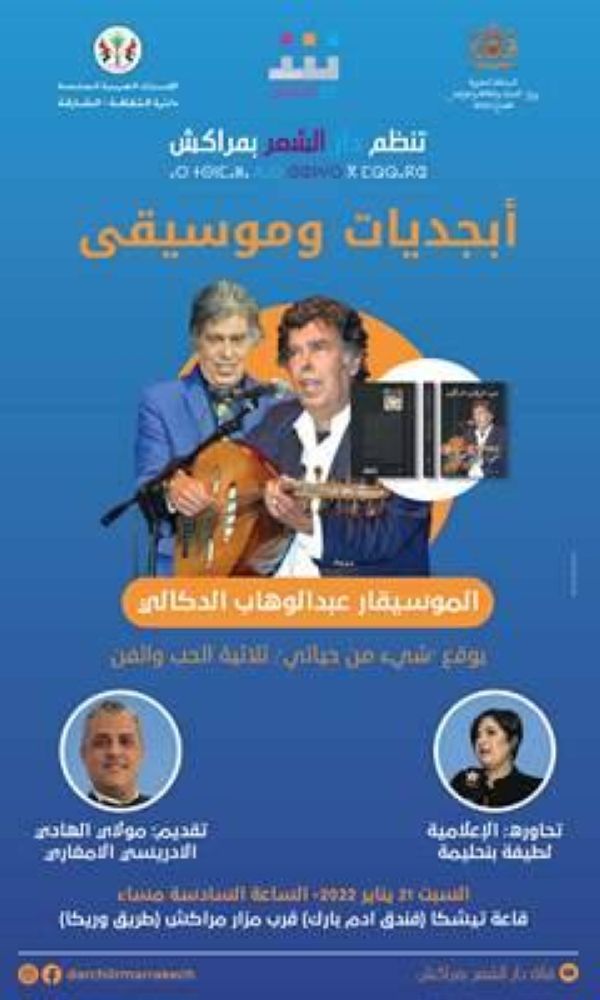 تنظم دار الشعر بمراكشفقرةجديدة موسومة ب”أبجديات وموسيقى”، وذلك يوم السبت 21 يناير 2023 على الساعة السادسة مساء بقاعة تيشكا بفندق آدم بارك . وتستضيف هذه الفقرة الموسيقار عبدالوهاب الدكالي، في احتفاء بصدور سيرته “شيء من حياتي”، ثلاثية الحب والفن والصادرة في جزء أول عن منشورات التوحيدي. وهي لحظة احتفاء بالشعر الغنائي المغربي، والذي شكل رواده زخما دافقا أعطى للأغنية المغربية مسيرة التألق، وإخصابا شعريا وفنيا حول العديد من ريبرتواره الى مقامات خالدة في الوجدان المغربي.