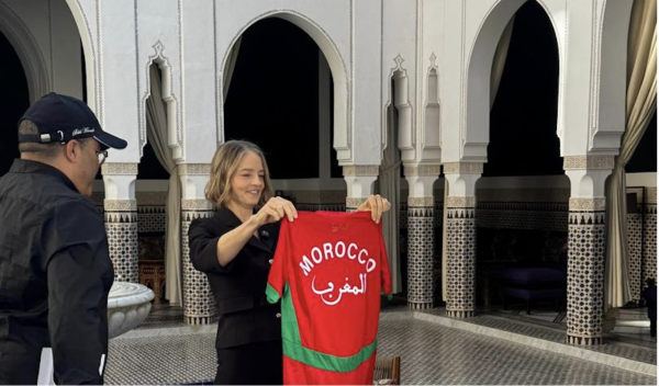 في لحظة إنسانية لافتة أصبحت حديث المهرجان، بادرت النجمة العالمية جودي فوستر إلى التعبير عن سعادتها العميقة بعد تلقيها هدية غير متوقعة من الصحفي والإعلامي المغربي بلال مرميد، الذي أهداها قميص المنتخب الوطني المغربي خلال لقائهما بمراكش. الهدية صنعت تأثيرًا خاصًا لدى فوستر التي حملت القميص بابتسامة واضحة، مؤكدة أنه يمثل بالنسبة لها أكثر من تذكار، بل ترميزًا لروح المغرب وحماسة جمهوره لكرة القدم، ومشيرة إلى أنها أصبحت منذ تلك اللحظة متطلعة لاكتشاف التجربة الكروية المغربية التي خطفت أنظار العالم في السنوات الأخيرة.