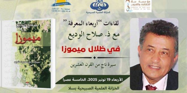 بشراكة مع جمعية سلا المستقبل و مؤسسة سلا للثقافة و الفنون والخزانة العلمية الصبيحية، يحتضن رحاب هذه الاخيرة يوم الأربعاء القادم، لقاء ثقافيا مفتوحا مع الكاتب والناشط الحقوقي صلاح الوديع، تحت عنوان “في ظلال ميموزا”، للغوص في خلفيات وتجليات تجربته الإنسانية والسياسية كما بسطها في كتابه “ميموزا” سيرة ناجٍ من القرن العشرين .