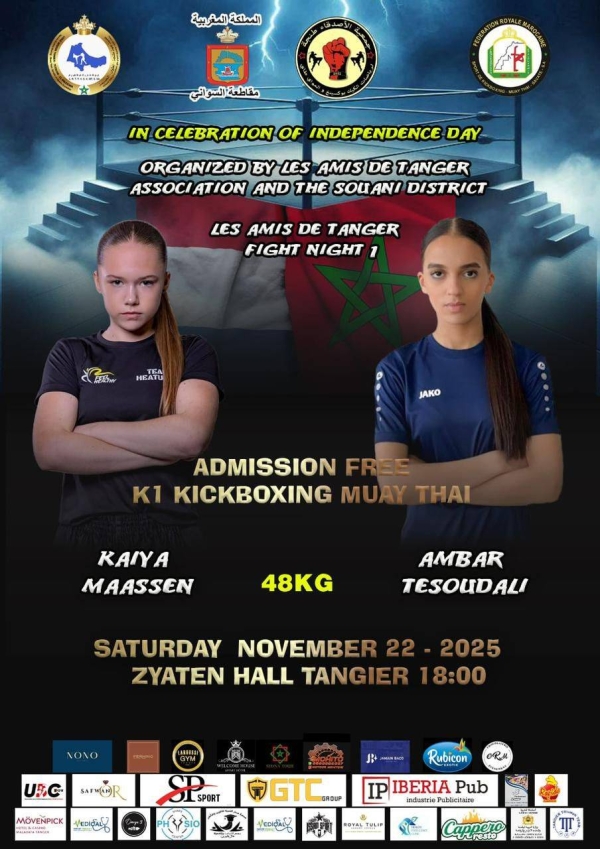 تستعد مدينة طنجة لاحتضان نزال رياضي واعد يجمع بين البطلتين المغربية عنبر تسودالي والهولندية كيا ماسان، وذلك يوم السبت 22 نونبر 2025 في وزن 48 كلغ، بالقاعة المغطاة الزياتن، ابتداء من السادسة مساء.
