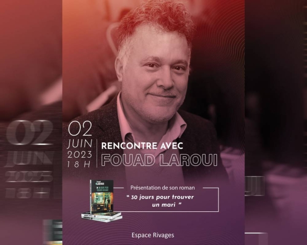 تنظم مؤسسة الحسن الثاني للمغاربة المقيمين بالخارج، لقاء أدبيا مع الكاتب المغربي-الهولندي، فؤاد العروي، لتقديم روايته ” 30 يوما للعثور على زوج” ، وذلك يوم الجمعة 2 يونيو 2023 على الساعة 6