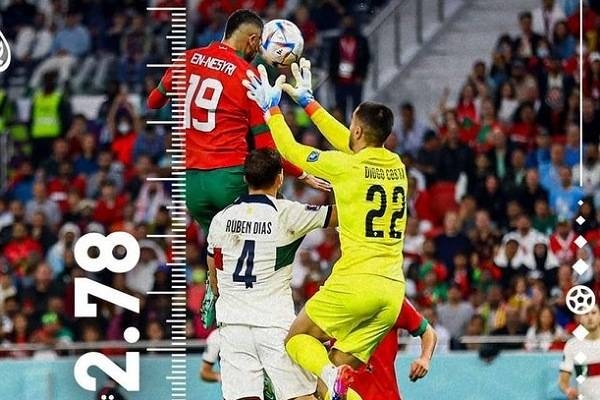 ونجح النصيري البالغ 25 عاما في تسجيل هدف مميز، سدده بعد قفزة تاريخية بلغ ارتفاعها مترين و78 سنتمترا.