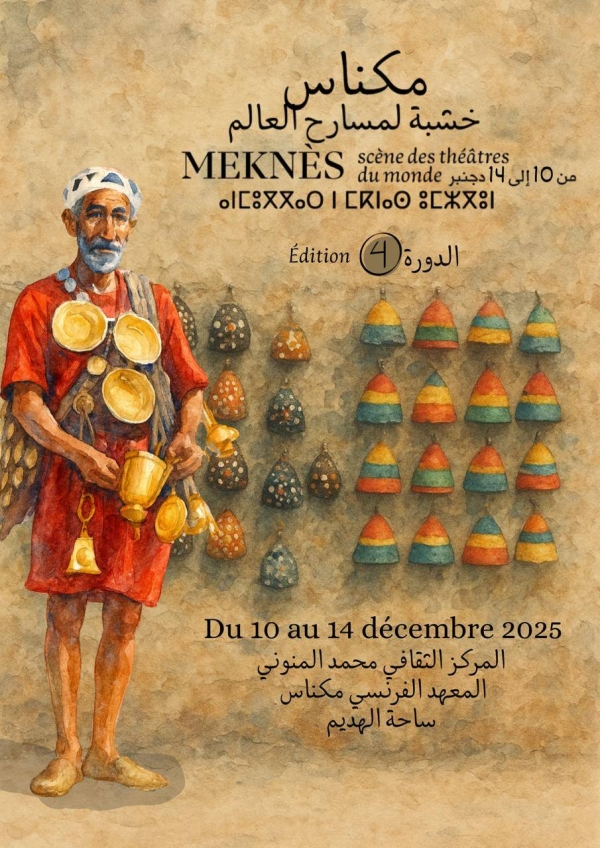 تستعد مدينة مكناس لاحتضان فعاليات الدورة الرابعة من مهرجان مكناس للمسرح – مكناس خشبة لمسارح العالم، الذي تنظمه مسرح الشامات بشراكة مع مجلس جهة فاس–مكناس وجماعة مكناس ووزارة الشباب والثقافة والتواصل – قطاع الثقافة، خلال الفترة الممتدة ما بين 10 و14 دجنبر 2025.