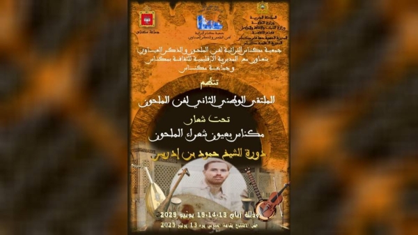 في إطار أنشطتها الثقافية والفنية الرامية إلى صون التراث اللامادي، تنظم جمعية مكناس التراثية لفن الملحون والذكر العيساوي، بشراكة مع المديرية الإقليمية للثقافة بمكناس، وجماعة مكناس، الملتقى الوطني الثاني لفن الملحون، وذلك تحت شعار: “مكناس بعيون شعراء الملحون” وذلك خلال الفترة الممتدة من 13 إلى 15 يونيو 2025.