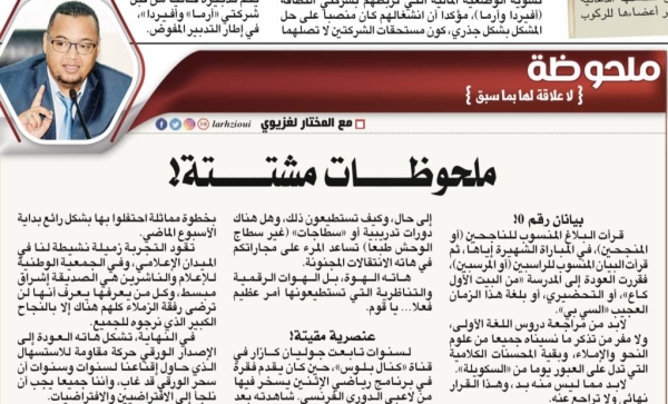 قرأت البلاغ المنسوب للناجحين (أو المنجحين)، في المباراة الشهيرة إياها، ثم قرأت البيان المنسوبللراسبين (أو المرسبين)، فقررت العودة إلى المدرسة “من البيت الأول كاع”، أو التحضيري، أو بلغةهذا الزمان العجيب “السي بي”.