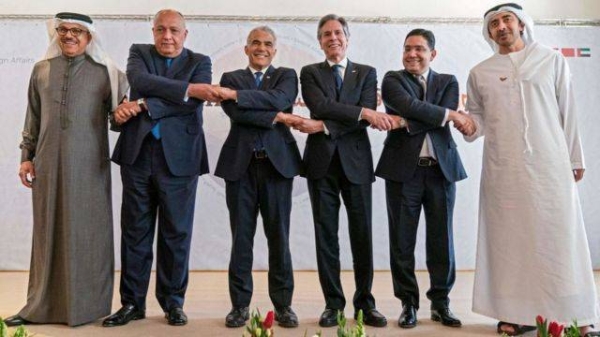 وكان وزراء خارجية مصر والإمارات والمغرب والبحرين حضروا في مارس الماضي في إسرائيل اللقاء الذي دعا إليه نظيرهم الإسرائيلي السابق يائير لابيد، وترأسه وزير الخارجية الأمريكي أنتوني بلينكن، تحت مسمى “قمة النقب”.