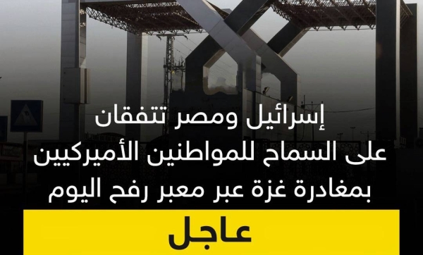 إسرائيل ومصر تتفقان على السماح للمواطنين الأميركيين بمغادرة غزة عبر رفح السبت