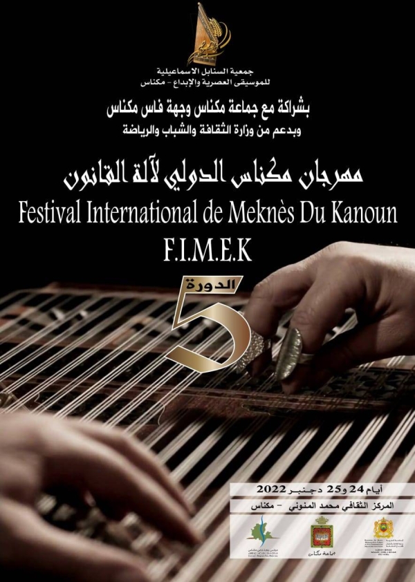 مهرجان مكناس الدولي لآلة القانون لجمعية السنابل الإسماعيلية للموسيقى العصرية والإبداع الذي غاب سنتين عن مدينة مكناس بسبب جائحة كورونا، يحظى هذه السنة بدعم وزارة الشباب والرياضة والتواصل ــ قطاع الثقافة ــ وبشراكة مع مجلسي جهة فاس مكناس والجماعة الترابية مكناس والمركز الثقافي الفرنسي.