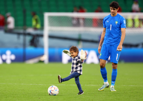 ونشر حساب الاتحاد الدولي بالعربية على موقع تويتر صورة حارس المرمى المغربي ياسين بونو مع ابنه أمام شباك “أسود الأطلس”.