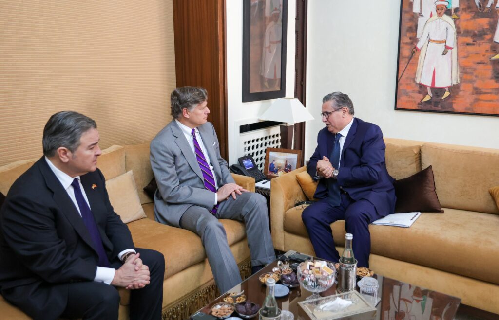 استقبل رئيس الحكومة، السيد عزيز أخنوش، يوم الخميس 30 أبريل2026 بالرباط، نائب وزير الخارجية الأمريكي، السيد كريستوفر لاندوChristopher Landau، الذي يقوم بزيارة رسمية إلى المملكة، بحضورسفير الولايات المتحدة الأمريكية بالمغرب، السيد ديوك بوكان Duke Buchan، حيث تم بحث سبل تعزيز العلاقات الاستراتيجية القائمة بين المغرب والولايات المتحدة الأمريكية، التي يرعاها قائدا البلدين جلالة الملك محمد السادس، نصره الله، والرئيس الأمريكي دونالد ترامب.