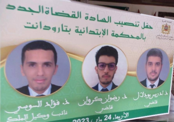 بحضور كل من الرئيس الأولى لدى محكمة الاستئناف بأكادير ونائب الوكيل العام بها، هيئة الدفاع، مساعدي القضاء، أطر وموظفي كتابة الضبط لدى النيابة العام والرئاسة، ممثلين عن المفوضين القضائيين، المحامون، أشرف رئيس المحكمة الابتدائية بتارودانت الأستاذ علي أيت كاغو، بقاعة الجلسات رقم 1 على تنصيب القضاة الجدد الذين تم تعيينهم من طرف جلالة الملك محمد السادس، باقتراح من المجلس الأعلى للسلطة القضائية.