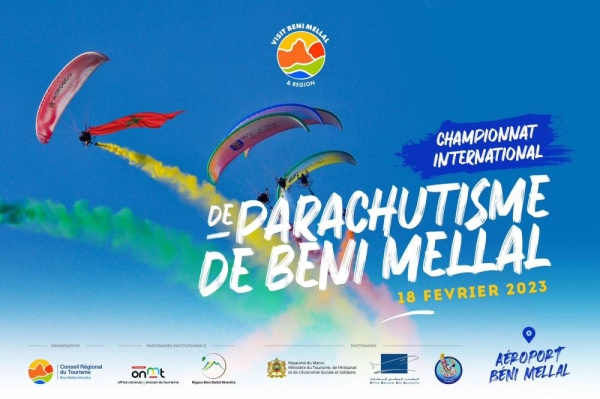 ينظم المجلس الجهوي للسياحة بني ملالخنيفرة، بالشراكة مع المكتب الوطني المغربي للسياحة ومجلس جهة بني ملال خنيفرة ، بطولة بني ملال الدولية للقفز بالمظلات من 17إلى 19فبراير 2023 يهدف هذا الحدث إلى تشجيع ممارسة هذه الرياضة في المنطقة وجعلها أداة للترويج لسياحة ذات قيمة مضافة عالية.