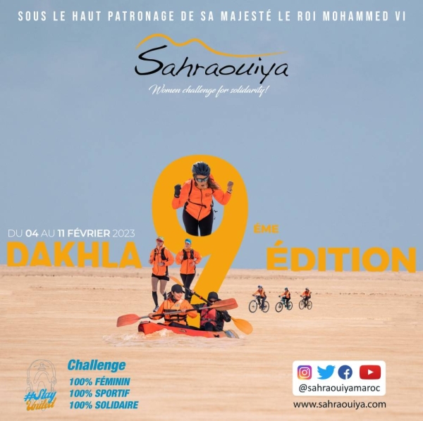 تنظم جمعية “خليج الداخلة “ Dakhla Lagon ”في الفترة الممتدة من 4 إلى 11 فبراير 2023 الدورة التاسعة للسباق التضامني “الصحراوية” بمشاركة 50 فريق نسائي من المغرب ودول أجنبية.
