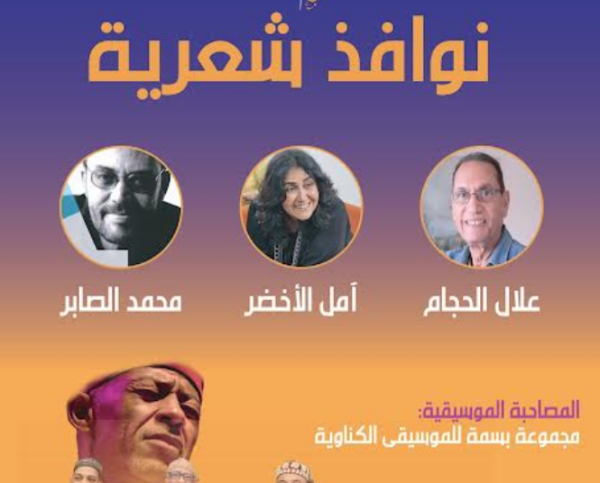 يلتقي جمهور دارالشعر بمراكش مع الشعراء: علال الحجام وأمل الأخضر ومحمد الصابر وفرقة بسمة للموسيقى الكناوية، برئاسة الفنان عبدالجليل قدسي، في أمسية شعرية وفنية جديدة بفضاء الدار بالمركز الثقافي الداوديات، وذلك مساء غد الجمعة 27 يناير ، في لقاء يجمع أجيال القصيدة المغربية الحديثة لفتح نوافذ شعرية جديدة، وقراءات شعرية.