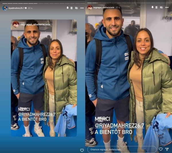 وشاركت شهرزاد الركراكي، صورة لها مع النجم الجزائري رياض محرز، عبر حسابها “إنستغرام”، بعد نهاية مباراة السيتي أمام ليفربول، مساء الخميس الماضي، في دور الـ16 من مسابقة كأس رابطة المحترفين الإنجليزية لكرة القدم.
