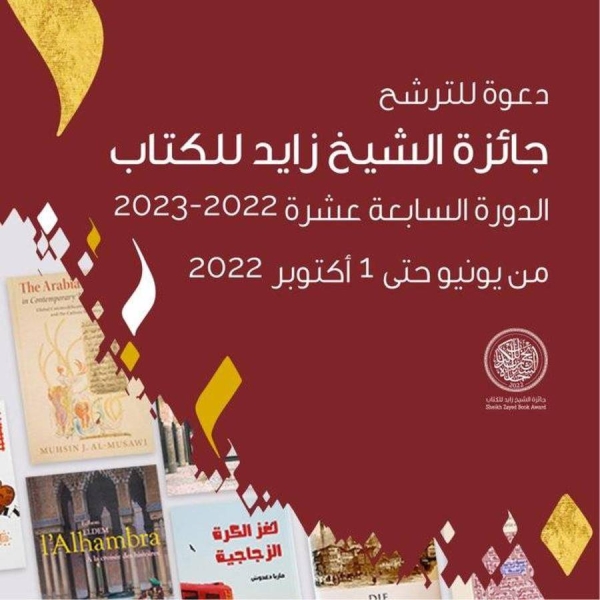 أعلن اليوم الخميس بأبوظبي ، عن فتح باب الترشيح لجائزة الشيخ زايد للكتاب، في دورتها الثامنة عشرة ، ابتداء من شهر يونيو الجاري ،والى غاية فاتح أكتوبر المقبل .