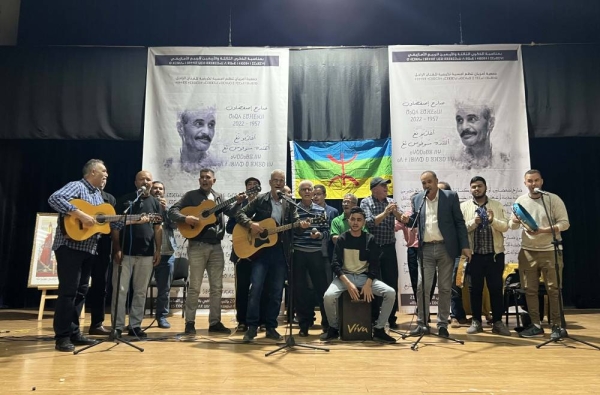 وقد استمرت فقرات الأمسية كما كان مبرمجا بإلقاء قصائد شعرية ألقاها كل من الشعراء جعفر أقواوشي، نجيب أياو، محمد الشامي، والشاعر عبد الرحيم فوزي، بعدها كان دور الموسيقى والغناء للفنانين والمجموعات الغنائية، حيث انطلقت بأوتار الفنان حسن أݣراو، تلاه الفنان بنعيسى الخوالد رفقة فاتي ثاريفشت اللذان أطربا الحضور، لتعود فرقة أزغنغان باند لتضيء خشبة المركب الثقافي من جديد، فكان دور الفنان الملتزم نوري حميدي بأغانيه الراقية، لتختتم أشغال هذه الأمسية بأغنية فرقة إصفضاون المشهورة “أغاربو نغ، أثننده سوفوس نغ” حيث تمت تأديتها جماعيا تخليدا لذكرى الفنان الراحل “عزي صارح”.