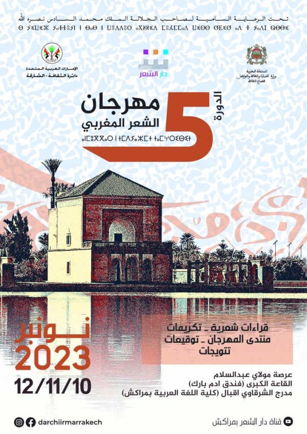 تنظم دار الشعر بمراكش فعاليات الدورة الخامسة لمهرجان الشعر المغربي، أيام 10-11-12 نونبر الجاري بمدينة مراكش.