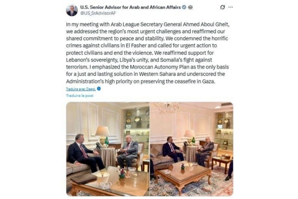 وتكشف الإشارة إلى اللقاء مع الأمين العام لجامعة الدول العربية عن رغبة أمريكية في إعادة تفعيل القنوات السياسية المشتركة مع العالم العربي، بعد فترة من الغموض في السياسة الخارجية الأمريكية. وهو ما يُفهم منه أن إدارة واشنطن — مهما تغيرت توجهاتها الداخلية — ما تزال تعتبر التنسيق مع الدول العربية المعتدلة، وفي مقدمتها المغرب، أساسًا لتحقيق الاستقرار الإقليمي.