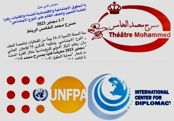 بمناسبة الحملة الأممية الـ 16 يومًا من الفعاليات لمناهضة العنف القائم على النوع الاجتماعي، وتخليدا للذكرى 75 للإعلان العالمي لحقوق الإنسان، ينظم المركز الدولي للدبلوماسية خلال الفترة الممتدة من 1 إلى 7 دجنبر 2023 معرضًا فنيًّا بمسرح محمد الخامس بالرباط، تحت شعار “حماية الحقوق الاجتماعية والاقتصادية للنساء والفتيات، ركيزة لمناهضة التمييز والعنف القائم على النوع الاجتماعي”