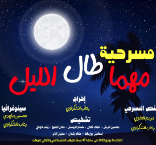يطلق نادي الفنون السبع (the seven art club) التابع للجمعية المغربية لتربية الشبيبة بسلا ؛ العرض الأول لمسرحيته بعنوان ” مهما طال الليل” يوم الثلاثاء 4 يوليوز الجاري بمركب التنشيط الفني والثقافي تابريكت.