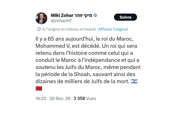 الوزير سلط الضوء على موقف إنساني نادر لجلالة المغفور له، حيث كتب بالعبرية: “ملك سيبقى في التاريخ، وقف إلى جانب يهود المغرب حتى في فترة المحرقة (الهولوكوست)، وأنقذ عشرات الآلاف منهم من موت محقق”، وتأتي هذه الإشادة الرسمية من مسؤول إسرائيلي بارز تأكيدا على الدور التاريخي للملك الراحل الذي رفض تطبيق قوانين حكومة فيشي الفرنسية العنصرية ضد اليهود المغاربة، وإصراره على اعتبارهم مواطنين مغاربة كاملي الحقوق إسوة بإخوانهم من المسلمين.