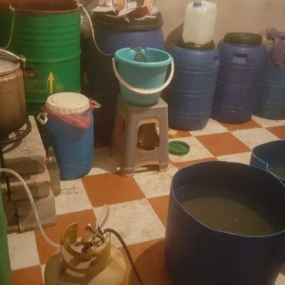 عملا بالمقتضيات القانونية لحالة التلبس تم إجراء تفتيش دقيق بداخل مسكنه الكائن بنفس الحي أسفر عن حجز 55 لترا إضافيا من نفس المسكر وإتلاف زهاء   1240 لترا من المخمر، ناهيك عن تفكيك وحجز معدات معملين تقليديين خاصين بتقطير المسكر، في حين تبين أن الموقوف مبحوث عنه على الصعيد الوطني بموجب ثلاث برقيات من أجل ترويج الخمور.