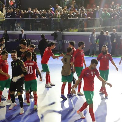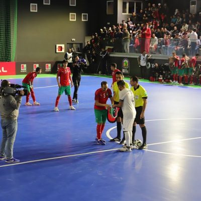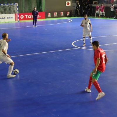 العيون 28 يناير 2020 / تفوق المنتخب الوطني، الثلاثاء بقاعة الحزام بالعيون، على نظيره الليبي بثلاثية نظيفة، وذلك برسم نهائيات كأس إفريقيا للأمم لكرة القدم داخل القاعة طوطال المغرب 2020.