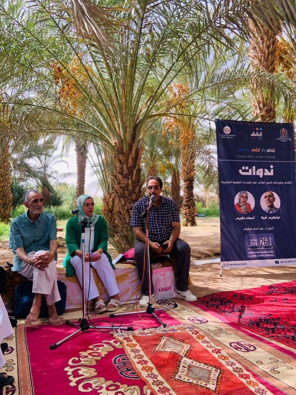التقى الشعراء بجمهورهم في ديوان "آوال" بواحة "أم الغيس"، في الجماعة القروية أم الگردان قيادة أديس بعمالة طاطا، المحطة الرابعة والأخيرة لتظاهرة نزاهة شعرية"، والتي نظمتها دار الشعر بمراكش يومي 25 و26 يوليوز.